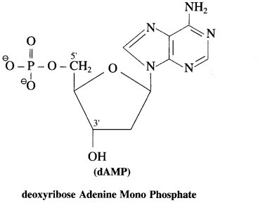 In DNA molecule sugar is deoxyribose. The base ‘A’ in the given segment is at 5 end while the base T at the 3’ end. I-fence the schematic representation of the given segment of DNA is