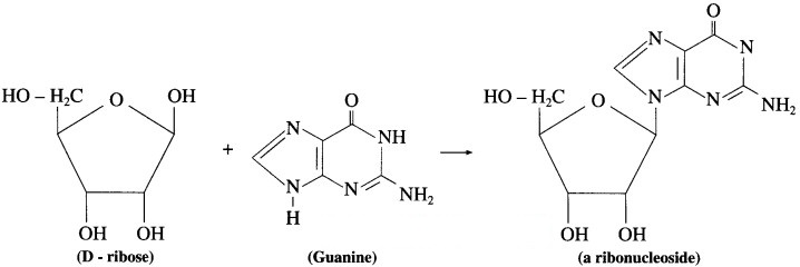 Draw structural formulae of nucleosides formed from the following sugars and bases.